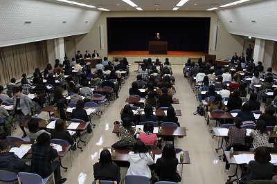 1月22日(土)午後2時より、「平成23年度入学試験合格者学校説明会」が開催されました。初めに5階講堂にて、本校の教育目標・国家試験・就職状況・本校独自の奨学金制度などについて全体説明があった後、入学後に使用する教室、実習室、フリースペースなどの校内施設を見学しました。
