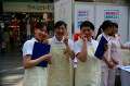 歯科衛生士科の学生は、来場者に設置パネルを参考にしながら歯の健康クイズに参加していただき、正答を解説して景品を配布しました。歯科技工士科の学生は、小学生以下の子供80名を対象に手型石膏作り(中には足型を取るケースも見受けられましたが)を行い、受付開始1時間後には予約が全て完了し、過去にないほどの大盛況でした。