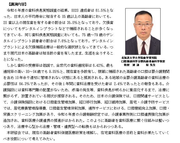 令和7年度第2回在宅医療を担う歯科医師の人材育成に係る研修会開催のご案内