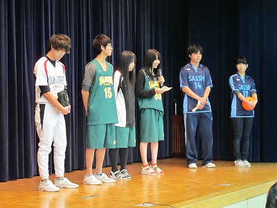 初めに5階講堂にて、本校の沿革・歴史・運営・教育目標などの概要入学前後の心得、国家試験、就職状況、学費負担軽減のための本校独自の特待生制度・奨学金制度などの全体説明後に、学生からサークル活動の紹介と勧誘がありました。